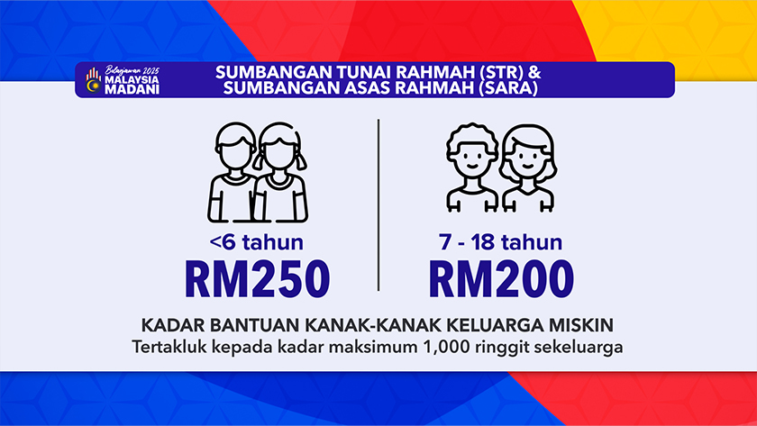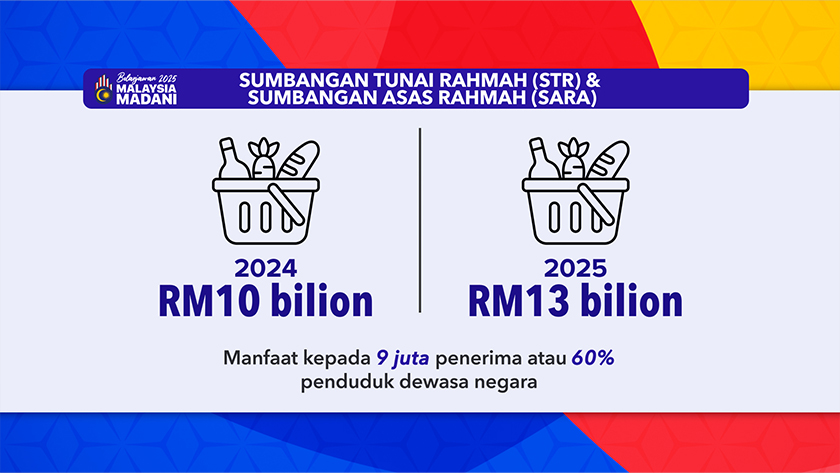 KUALA LUMPUR: Kerajaan memberikan peningkatan tertinggi pada 2025 bagi Sumbangan Tunai Rahmah (STR) dan Sumbangan Asas Rahmah (SARA) iaitu kepada RM13 bilion berbanding RM 10 bilion.