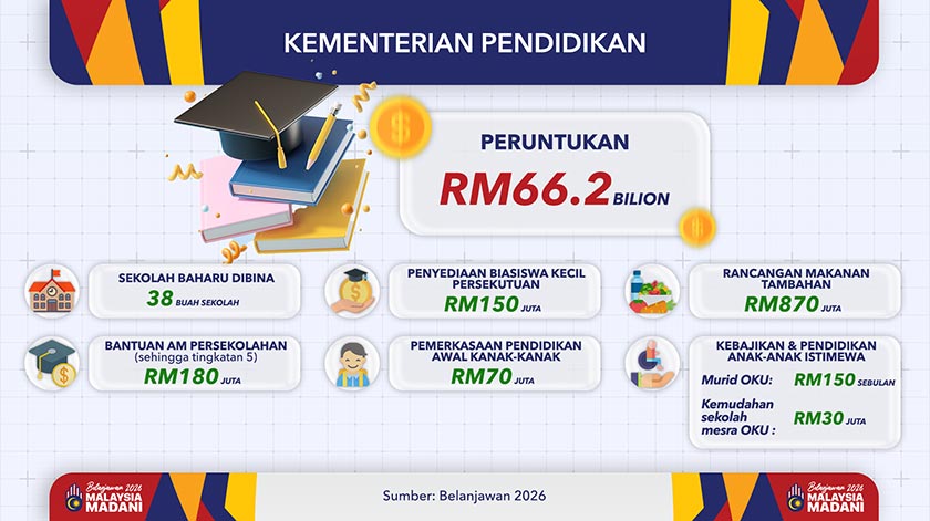 Belanjawan 2026: RM66.2 bilion untuk pendidikan, reformasi dan prasarana sekolah