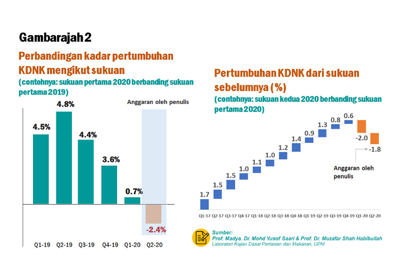 Pada pelaporan pertumbuhan ekonomi yang lepas, pertumbuhan KDNK sukuan pertama 2020 adalah sebanyak 0.7 peratus berbanding pertumbuhan ekonomi sukuan pertama 2019. Kami menjangkakan pertumbuhan ekonomi sukuan kedua adalah -2.4 peratus berbanding dengan sukuan kedua 2019.