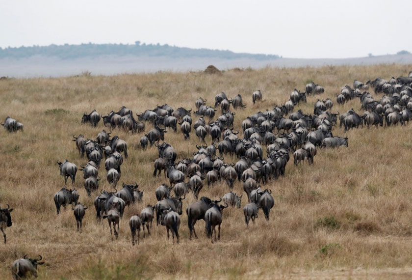 Biasanya, dataran luas savannah di kawasan rizab Maasai Mara, Kenya dipenuhi kumpulan pelancong dunia yang berharap dapat menyaksikan kawanan singa memburu mangsa sempena musim penghijrahan terbesar spesies kijang wildebeest.