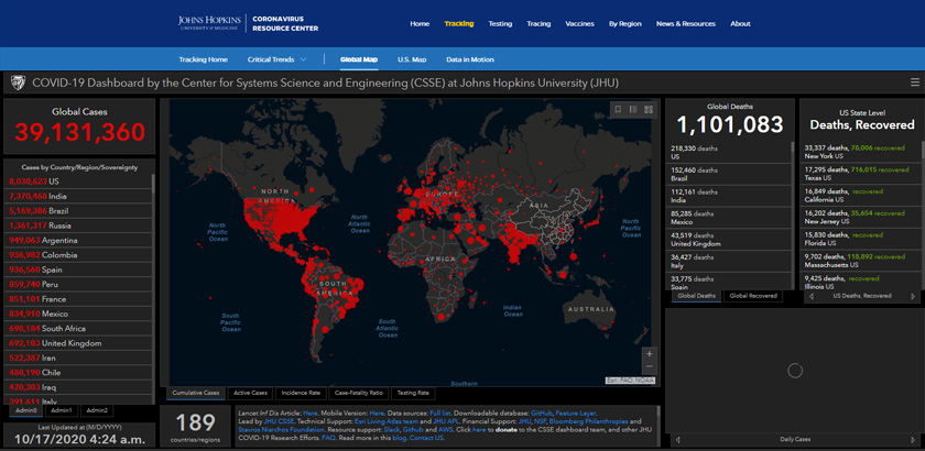 Data terbaharu Johns Hopkins University menunjukkan Amerika Syarikat (AS) terus kekal sebagai negara paling teruk terkesan pandemik.