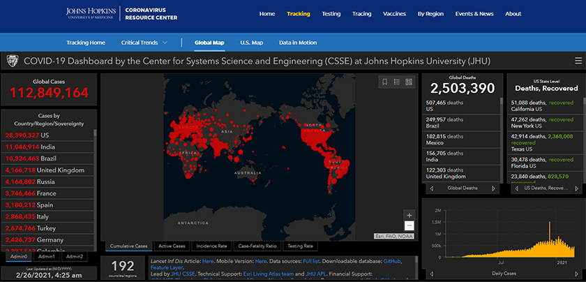 Data terbaharu Johns Hopkins University menunjukkan Amerika Syarikat kekal negara paling teruk terjejas dengan lebih 28.39 juta jangkitan.