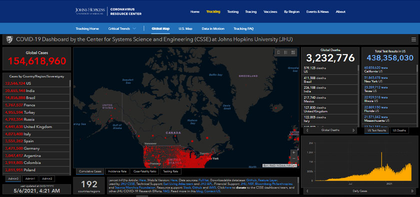 Data terbaharu Johns Hopkins University menunjukkan Amerika Syarikat masih kekal negara paling teruk terjejas dengan lebih 32.54 juta kes.
