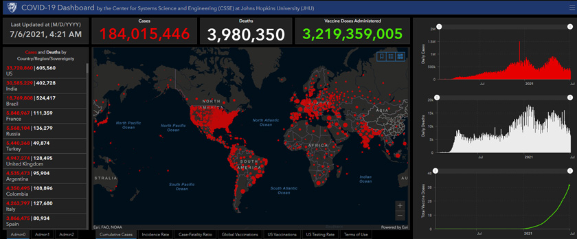 JUMLAH kumulatif kes positif COVID-19 di seluruh dunia ketika ini mencecah 184 juta kes berikutan lebih 400,000 kes baharu dikesan dalam tempoh 24 jam lepas.