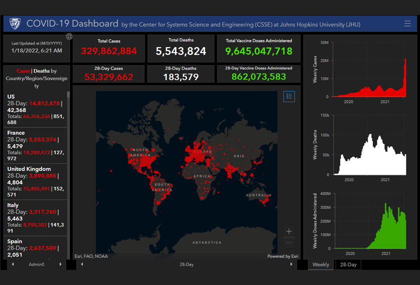 Data terbaharu Johns Hopkins University menunjukkan Amerika Syarikat masih kekal negara paling terjejas dengan lebih 66.2 juta kes.