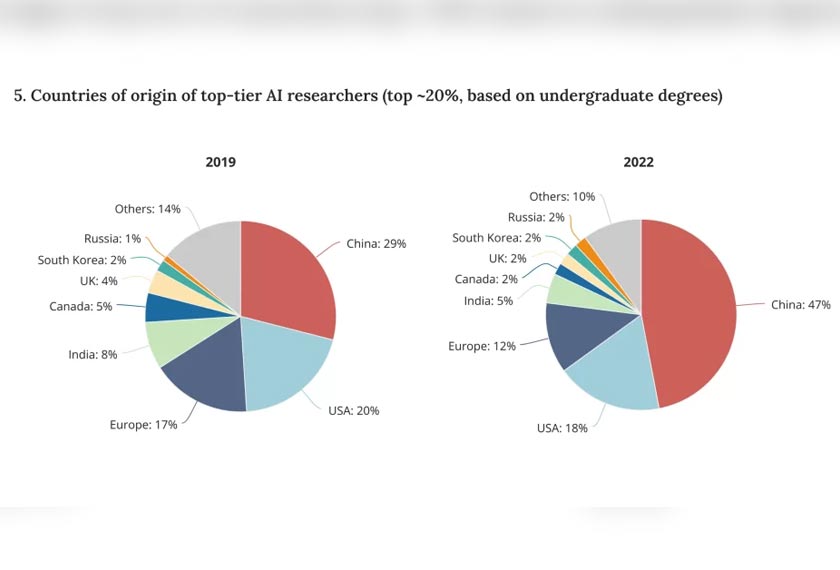 Tetapi menurut laporan terkini oleh Marco Polo, usaha Amerika mungkin sudah terlambat kerana pada tahun 2022, sebanyak 47% penyelidik terbaik dalam bidang AI berasal dari China.