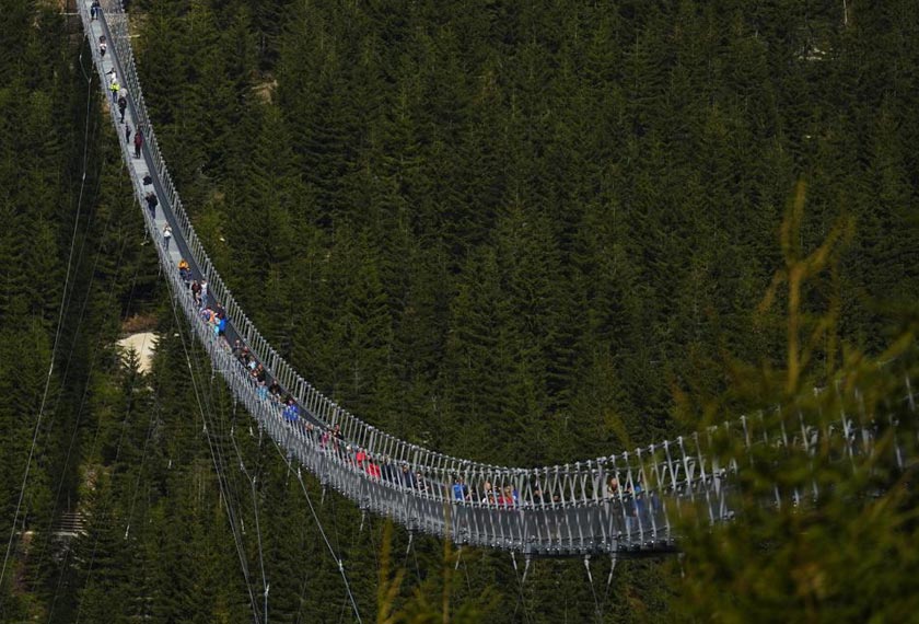 DOLNI MORAVA: Sebuah jambatan gantung yang dipercayai struktur binaan terpanjang seumpamanya di dunia kini dibuka di sebuah resort pergunungan di Republik Czech.