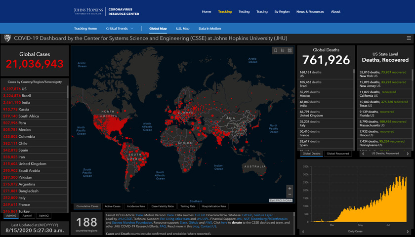 Data terbaharu Johns Hopkins University menunjukkan Amerika Syarikat (AS) terus kekal sebagai negara paling teruk terjejas dengan lebih 25 peratus daripada keseluruhan kes dikesan di negara itu.