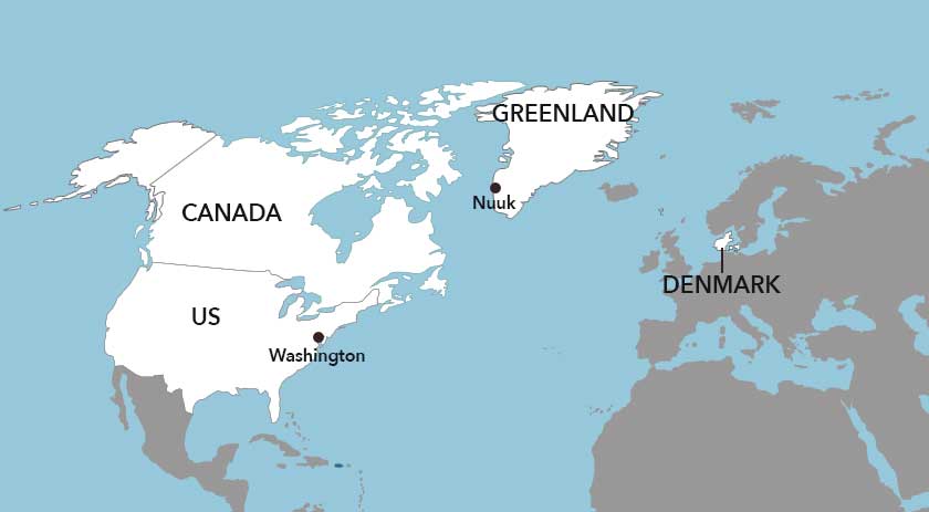Sekitar 80 peratus Greenland dilitupi ais, dengan kebanyakan penduduk menetap di pesisir barat daya sekitar ibu kota, Nuuk.