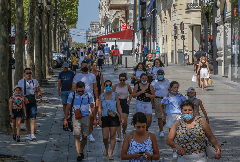 Dewan Bandaraya Paris mencadangkan bahawa pelitup muka wajib dipakai di jalan beli belah yang sesak, di sepanjang tebing Sungai Seine dan Canal Saint-Martin selain di taman serta pasar terbuka.