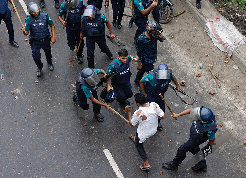 Sementara itu, jurucakap Polis Metropolitan Dhaka, Faruq Ahmed berkata: "Pasukan kami diserang tanpa sebab. Mereka hanya cuba melambatkan aliran trafik.