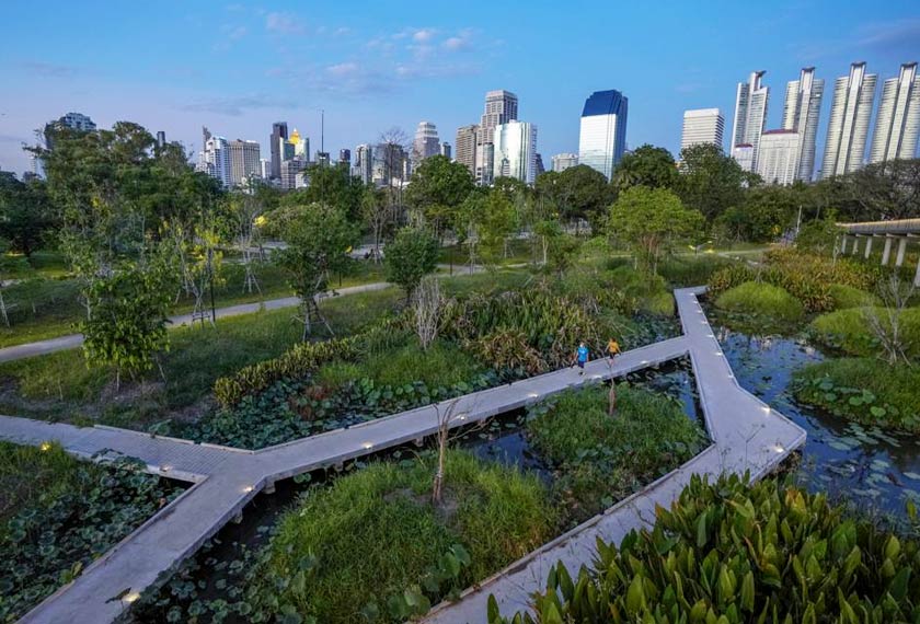 BANGKOK: Pokok menghijau, kolam tenang, landskap indah dan unggas berterbangan bebas... semua itu menjadi idaman warga bandar raya Bangkok yang selama ini rimas dengan suhu panas, kesesakan jalan raya serta hutan konkrit.