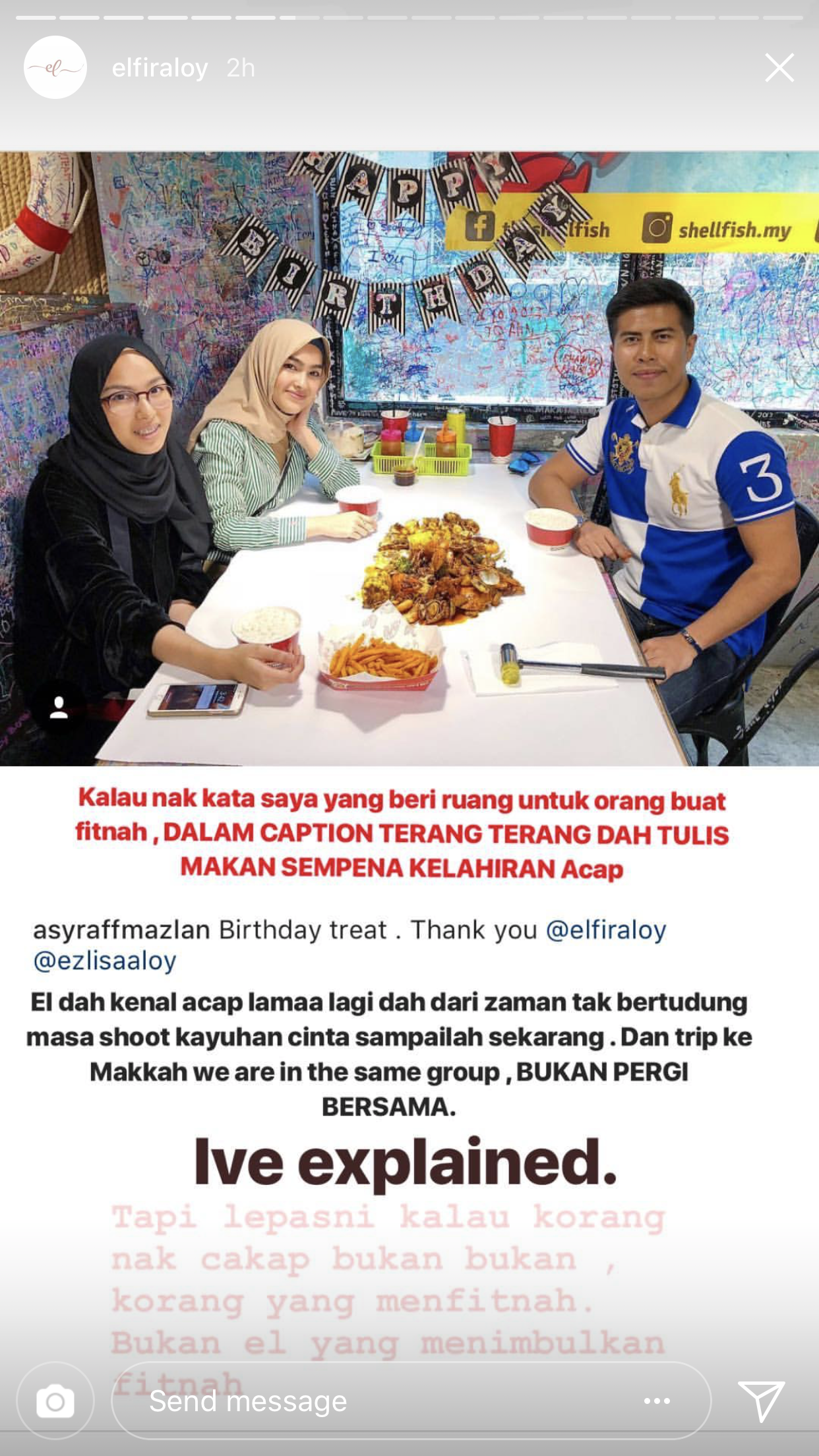 “Kalau nak kata saya yang beri ruang untuk orang buat fitnah, dalam caption terang-terang dah tulis makan sempena kelahiran Acap.