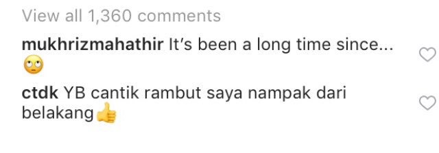 Tokti sempat meninggalkan komen di gambar Syed Saddiq berkata, “YB cantik rambut saya nampak dari belakang.”
