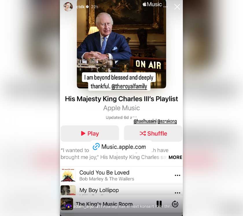 The King’s Music Room boleh didengari di Apple Music 1 bermula 10 Mac secara percuma.