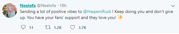 “Sending a lot of positive vibes to @HaqiemRusli !