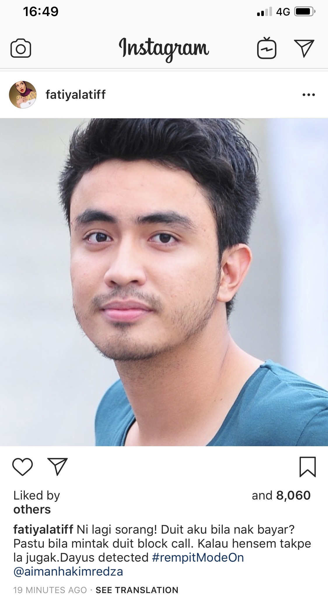 "Ni lagi sorang! Duit aku bila nak bayar? Pastu bila mintak duit block call. Kalau hensem takpe la jugak. Dayus detected #rempitmodeon," tulis Fathia.