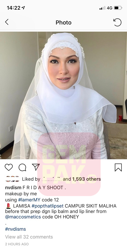 Jurusolek terkenal, Nad Ismail turut memuat naik foto Mona yang menyarungkan busana pengantin di laman Instagram miliknya.
