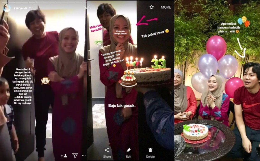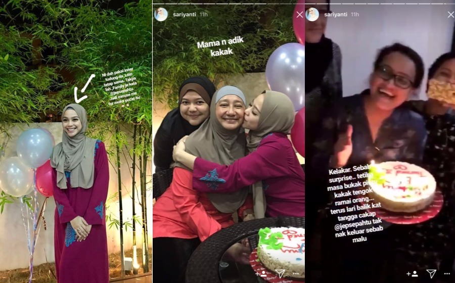 Aktres itu berkongsi momen kejutan tersebut menerusi beberapa sedutan video dan foto yang dimuat naik di Instagram Stories Sari, @sariyanti.