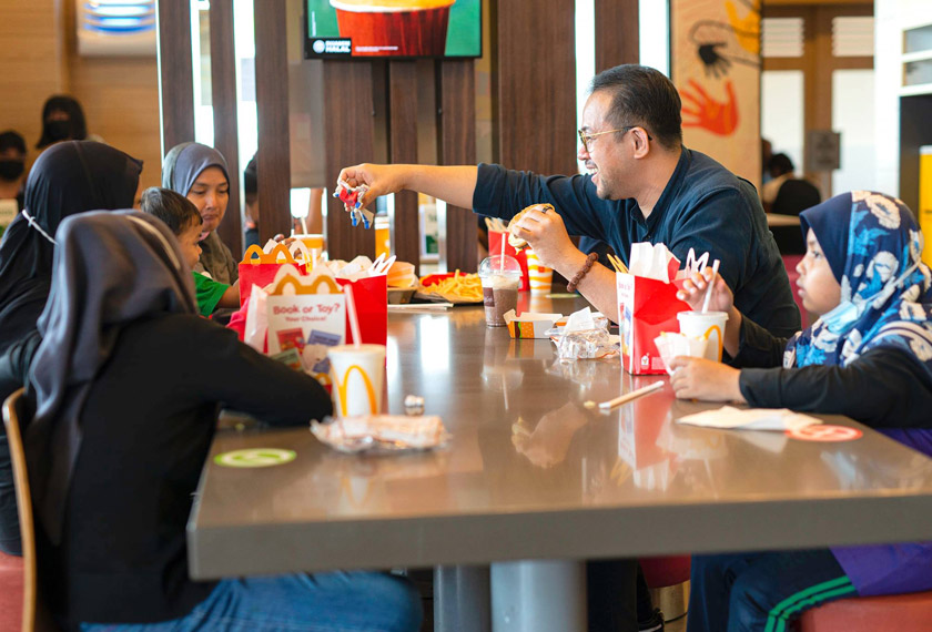 Steven Sim turut membawa mereka semua ke sebuah restoran makanan segera, sebelum ke rumah sewa baharu mereka.