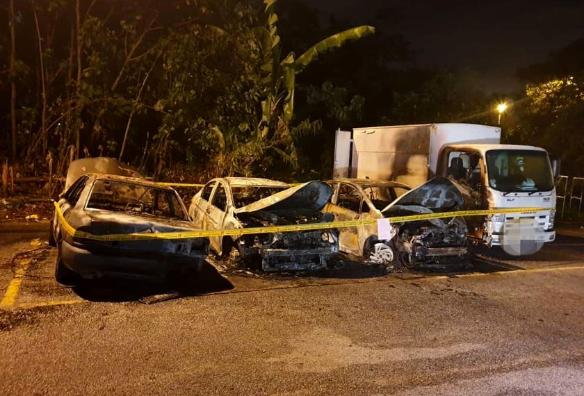 Antara kenderaan tersebut adalah kereta BMW, Proton Persona, Proton Wira, Honda City dan sebuah lori Isuzu.