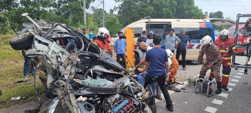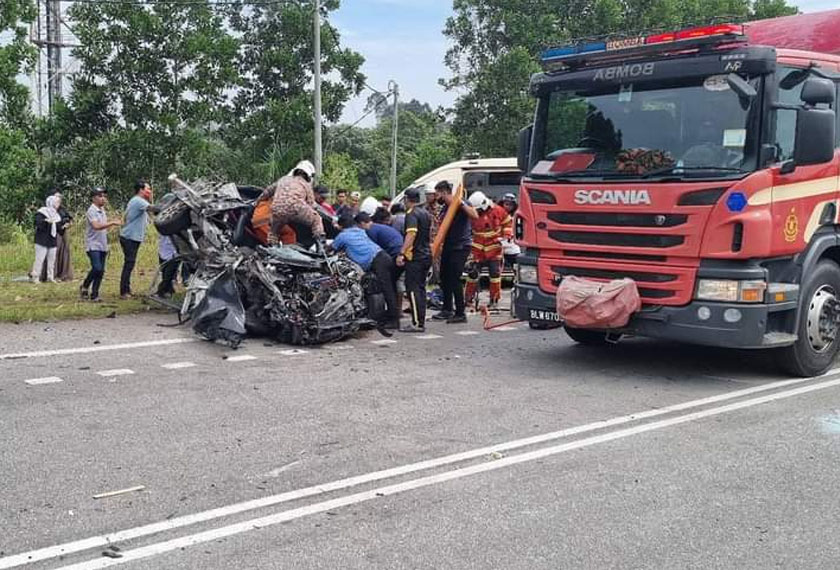 "Sebaik tiba di lokasi, didapati kereta Proton Wira terbabit dipercayai telah masuk ke laluan bertentangan kemudian melanggar tayar belakang sebelah kanan sebuah lori.