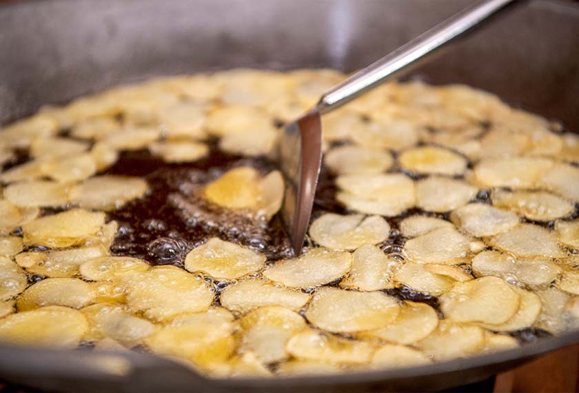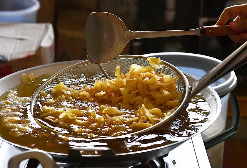 "Kena api perlahan agar kerepek tidak hangus dan warna pula kuning keemasan," jelasnya dan mengakui pernah melecur terkena percikan minyak panas.