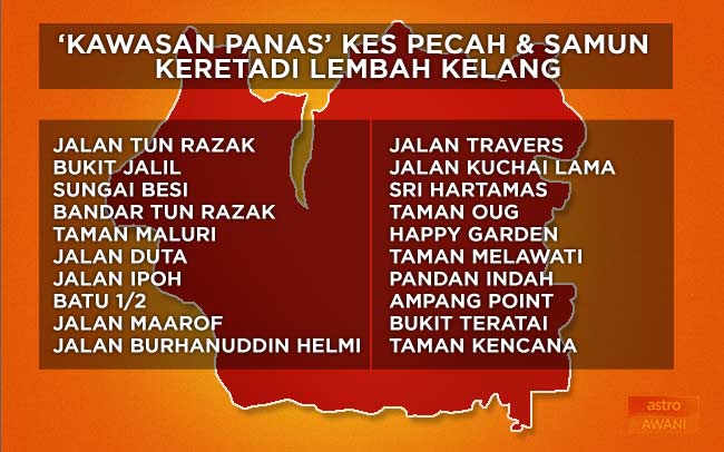 Kedua-duanya dikenalpasti sebagai dua daerah di Lembah Klang yang mencatatkan rekod paling tinggi kes samun pecah cermin kereta dari Januari hingga November tahun lepas.