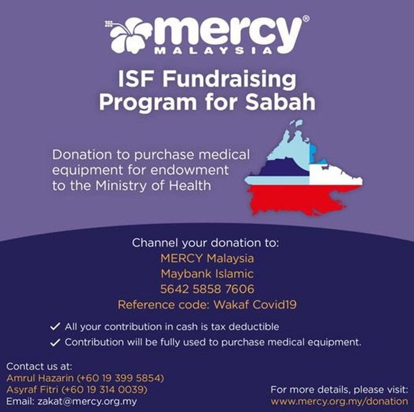 Justeru, katanya orang ramai yang mahu menyalurkan sumbangan boleh melayari laman Facebook MERCY Malaysia atau menyalurkan terus ke akaun Maybank Islamic MERCY Malaysia (5642 5858 7606) dengan memasukkan kod rujukan 'Wakaf Covid19'.