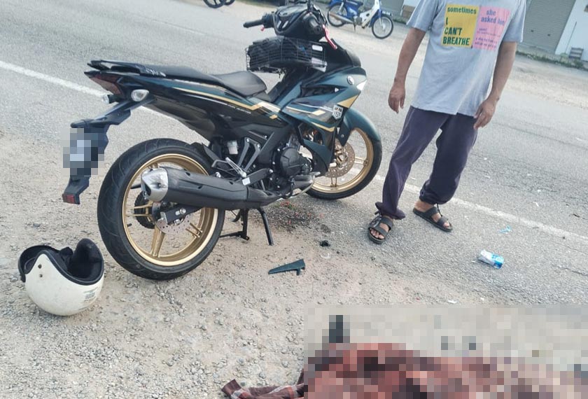 BALING: Seorang datuk maut manakala cucunya parah dalam kemalangan sebuah motosikal dengan sebuah pacuan empat roda di Kampung Mengkuang Masjid di Jalan Kuala Pegang-Parit Panjang, di sini, pada Rabu.