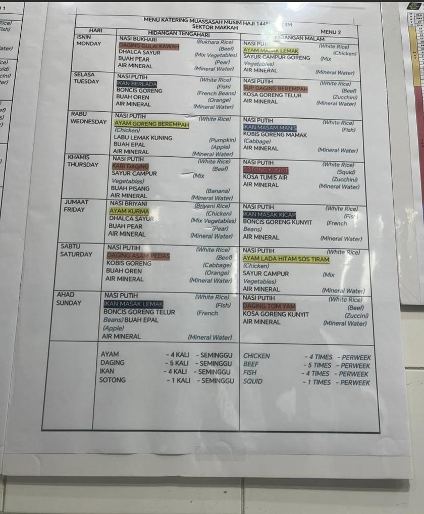 Itu antara 42 menu yang disajikan kepada jemaah Malaysia sepanjang musim haji 1445H/2024M, supaya mereka tidak jemu serta bosan dengan juadah sama setiap kali waktu makan tengah hari atau malam.