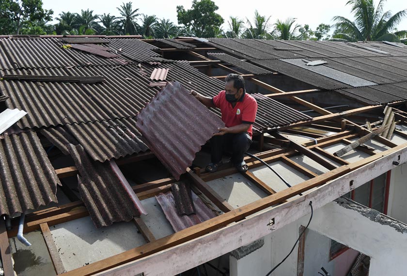 "Kejadian berlaku sekelip mata. Mulanya kami terdengar bunyi yang sangat kuat di bahagian atas rumah sebelum melihat bumbung bahagian hadapan rumah tercabut dan diterbangkan angin. Sebahagian bumbung tersebut terpelanting ke rumah jiran.