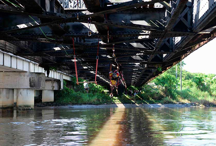 "Mohd Zamri berjaya merentas jambatan itu secara solo manakala tiga yang lain melakukan misi yang sama secara bergilir-gilir. Memang satu cabaran yang besar dipikul oleh mereka bagi menunjukkan semangat cintakan negara sempena Hari Malaysia," katanya.