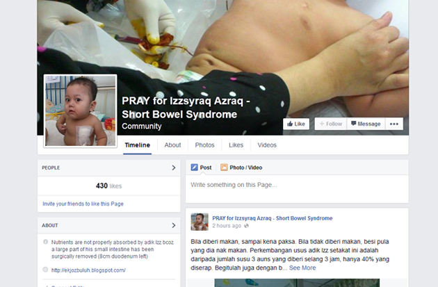 Laman Facebook PRAY for Izzsyraq Azraq - Short Bowel Syndrome - Gambar Facebook