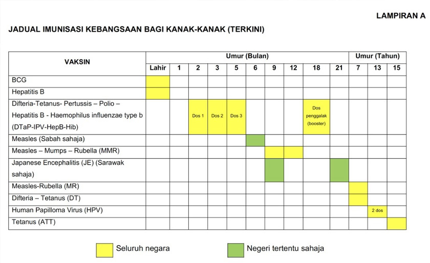KUALA LUMPUR:Kementerian Kesihatan Malaysia (KKM) akan mengubah Jadual Imunisasi Kebangsaan untuk Kanak-Kanak secara berperingkat di semua klinik kesihatan (KKM) di seluruh negara bermula awal bulan ini.