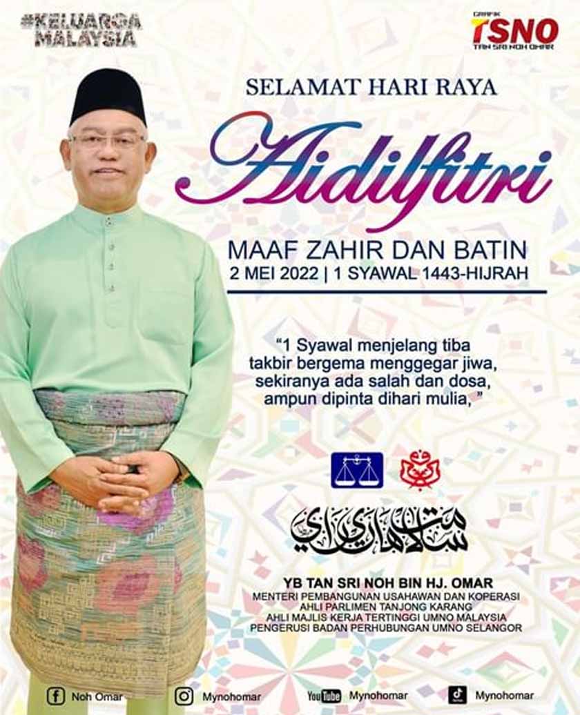 Menteri Pembangunan Usahawan dan Koperasi, Tan Sri Noh Omar pula, mengingatkan orang ramai agar berhati-hati dalam perjalanan pulang ke kampung.