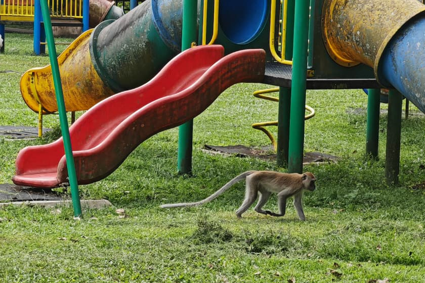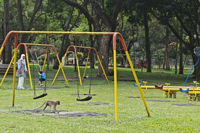 Didapati beberapa ekor monyet itu mengejar ibu dan anak yang masih kecil ketika mereka beriadah di taman permainan yang disediakan, si ibu terpaksa meminta pertolongan daripada orang berdekatan bagi menghalau haiwan tersebut.