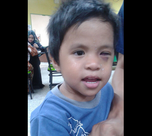 Keadaan terkini Adib selepas pembedahan membuang mata kanan akibat barah - Foto Jaswan Mulop