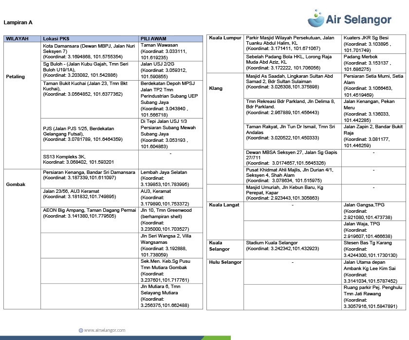 “Lokasi pili awam telah ditambah dari semasa ke semasa bagi membantu para pengguna mendapatkan bekalan air alternatif,” kata kenyataan itu lagi.