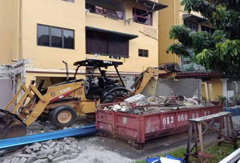 "Tindakan notis dan roboh serta-merta dilaksanakan berdasarkan Akta Jalan, Parit & Bangunan (Akta 133) berikutan tambahan struktur baharu di bahagian tepi dan belakang yang tidak dibenarkan bagi bangunan kediaman bertingkat," kata kenyataan.