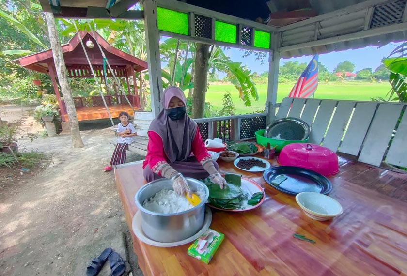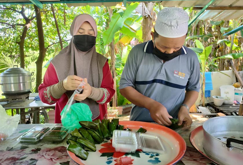 Fazilah yang dibantu suami, Sabudin Dahaman, 65 tahun, dan anak Siti Umairah, 36 tahun, mula membuat inti kelapa parut terlebih dulu pada waktu malam manakala pembungkusan dilakukan pada waktu pagi hingga jam 6 petang.