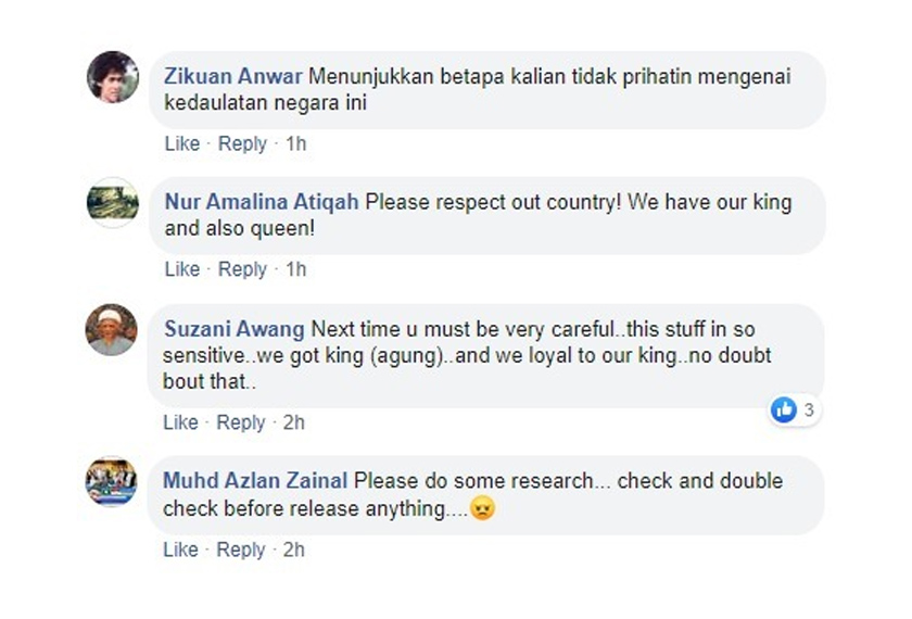 Meskipun telah memohon maaf, rakyat Malaysia keseluruhannya masih berasa kesal dengan tindakan tersebut. Ramai pengguna media sosial telah meninggalkan komen yang 'panas' di laman Facebook penganjur tersebut: