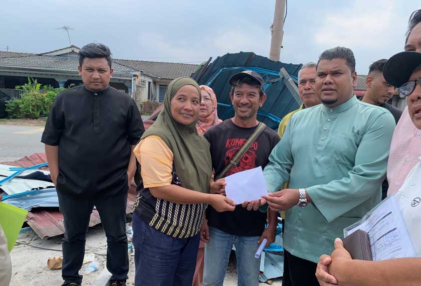 “Ketika kejadian, semua barang di kedai saya musnah selain khemah diterbangkan sehingga jatuh di bumbung rumah. Ketika itu juga saya dan dua anak masing-masing berumur 18 dan 27 tahun berada dalam rumah berasa takut.