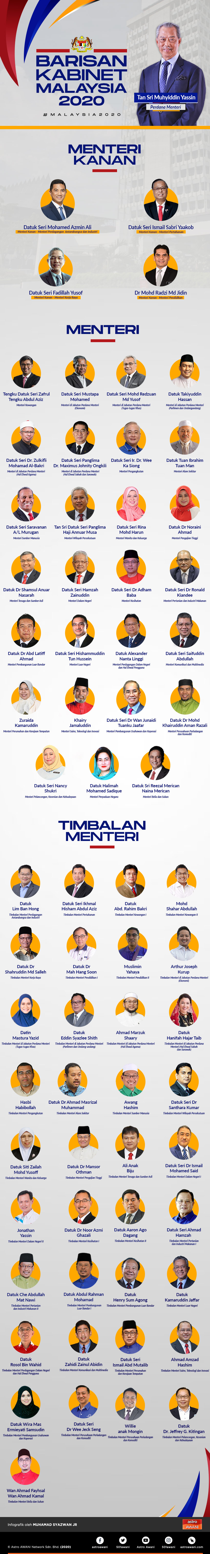 Perdana Menteri, Tan Sri Muhyiddin Yassin hari ini mengumumkan pelantikan barisan Jemaah Kabinet yang baharu.