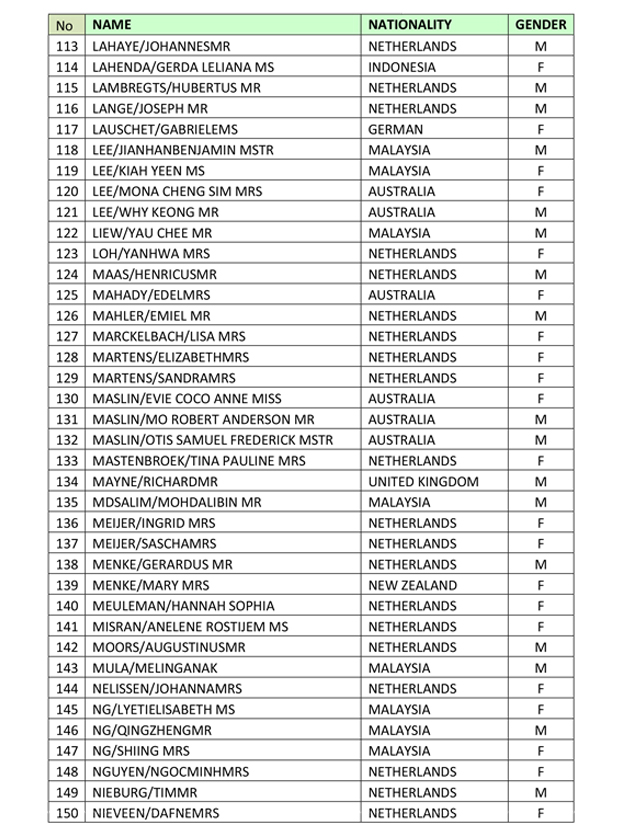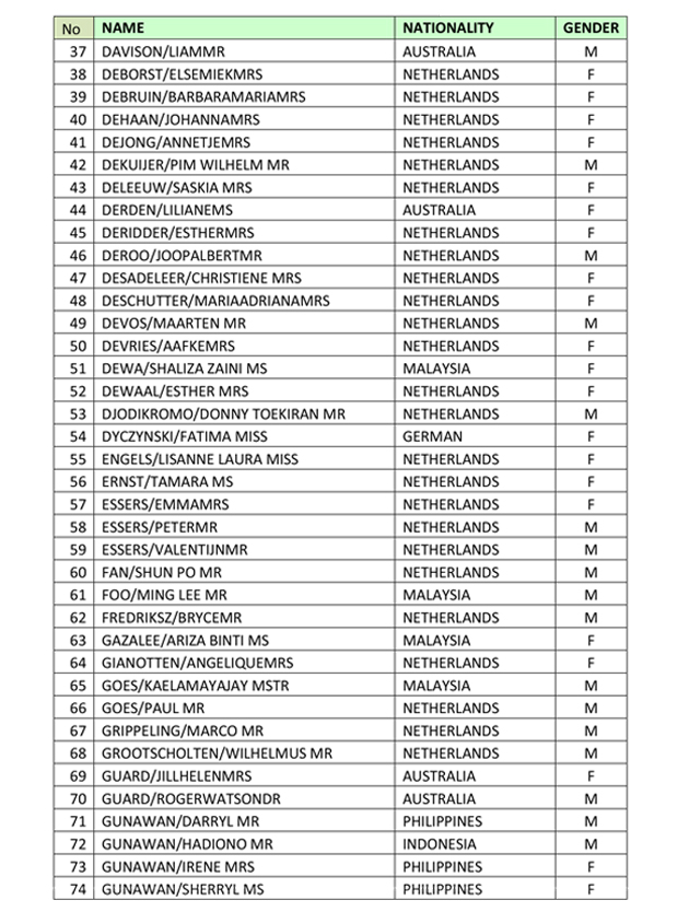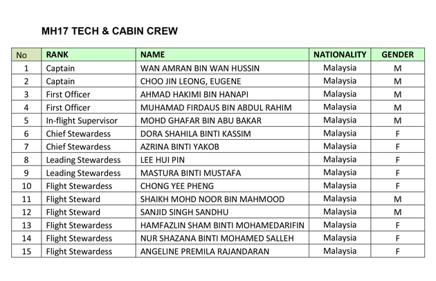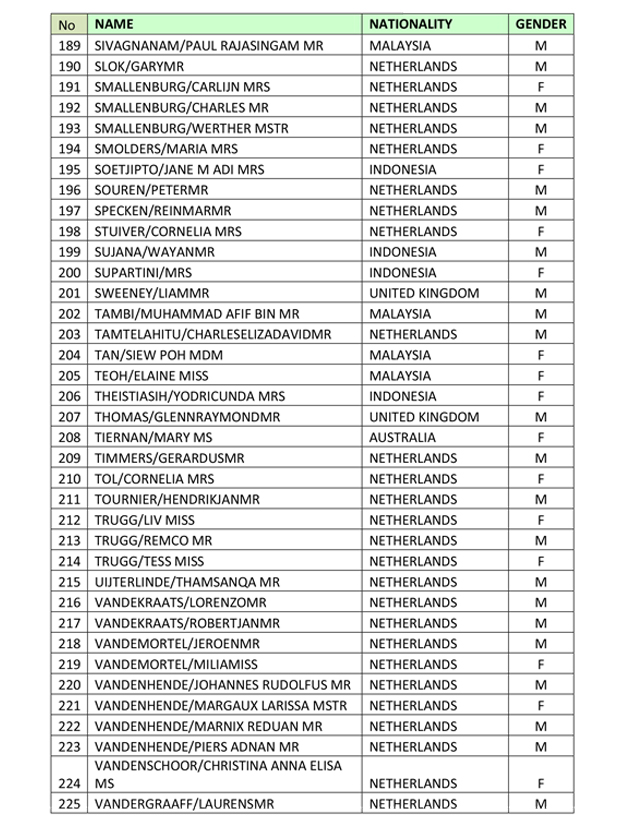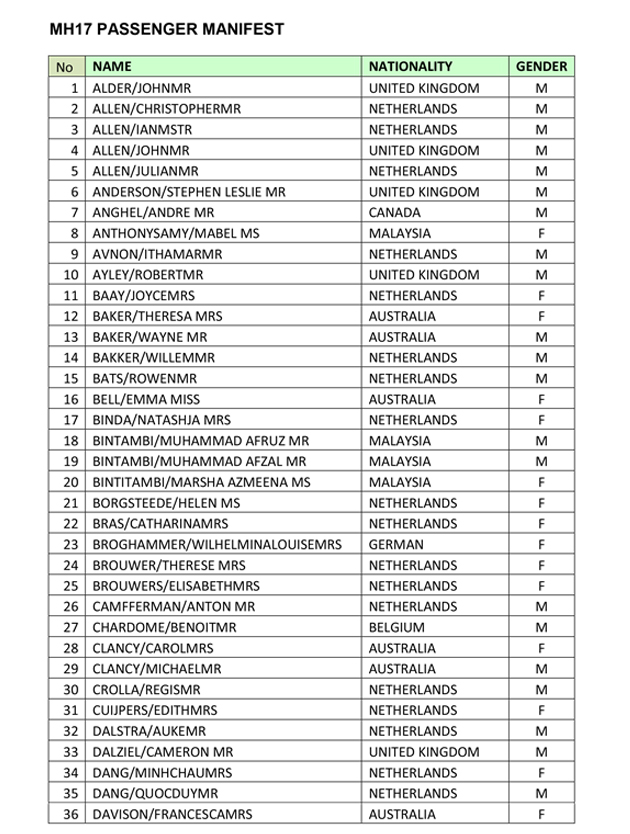 Senarai penuh nama penumpang Penerbangan MH17 dengan kewarganegaraan dan jantina: