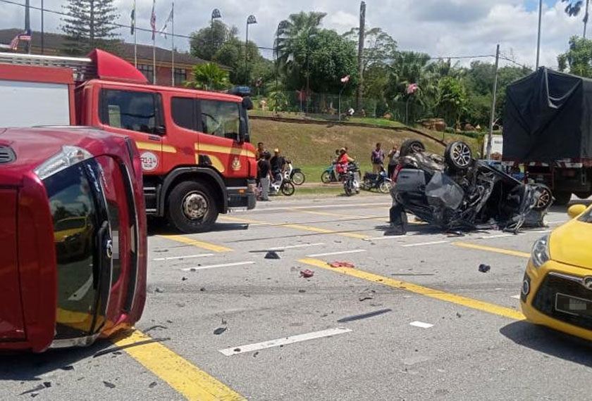 Kemalangan melibatkan kenderaan jenis Perodua Alza, Honda City, Perodua Axia dan lori jenis Hino.