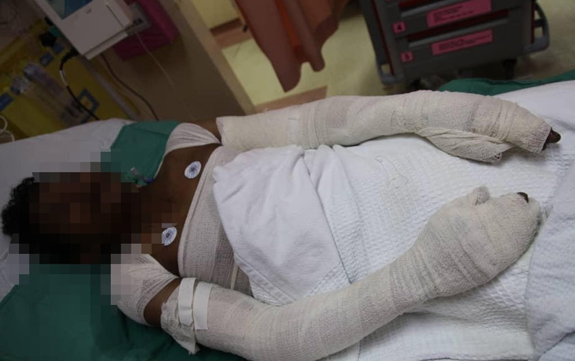 Jelas beliau, abang mangsa yang melihat keadaaan adiknya melecur itu telah membuat laporan polis untuk tindakan lanjut.