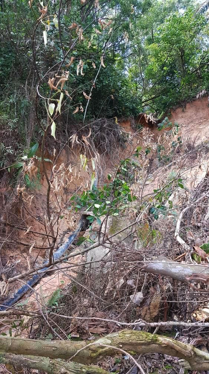 Pada Khamis lalu, penduduk terbabit mula dikejutkan dengan kejadian tanah runtuh sekitar pukul 7.15 pagi mengakibatkan bekalan air terhenti 15 minit kemudian selepas beberapa batang pokok tumbang dan menghempap paip air utama syabas sehingga pecah.