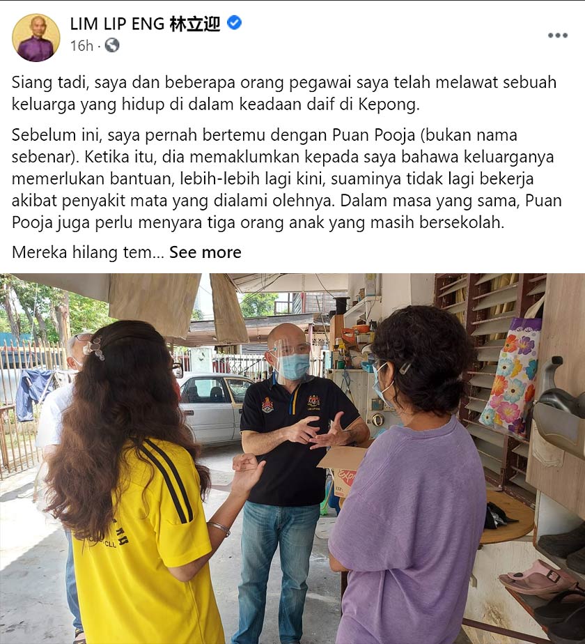Memahami keadaan mereka, Lip eng telah menyampaikan bantuan kewangan dan makanan.