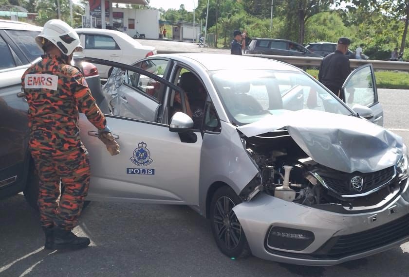 “Kemalangan dipercayai berlaku apabila konvoi kenderaan PDRM ingin membelok ke kiri masuk ke simpang di sebelah kiri jalan dan secara tiba-tiba dilanggar sebuah treler yang bergerak dari arah belakang tidak nampak dan sempat membrek lalu melanggar dua kenderaan jabatan.